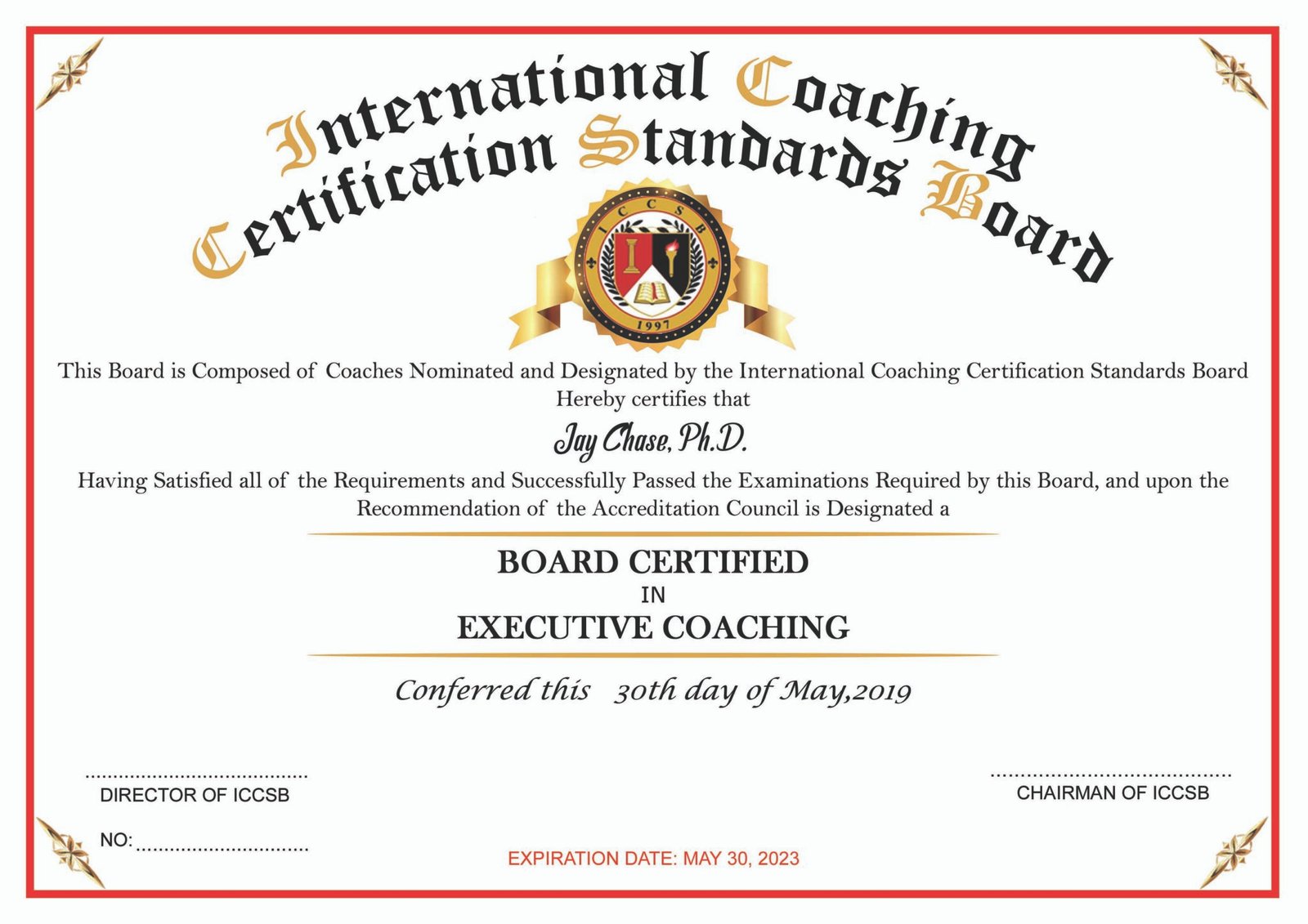 The International Coaching Certification Standards Board is the oldest board certifying organization for coach specialties. The ICCSB was the first to “board certify” coaches and is recognized internationally for the highest standards of its members.